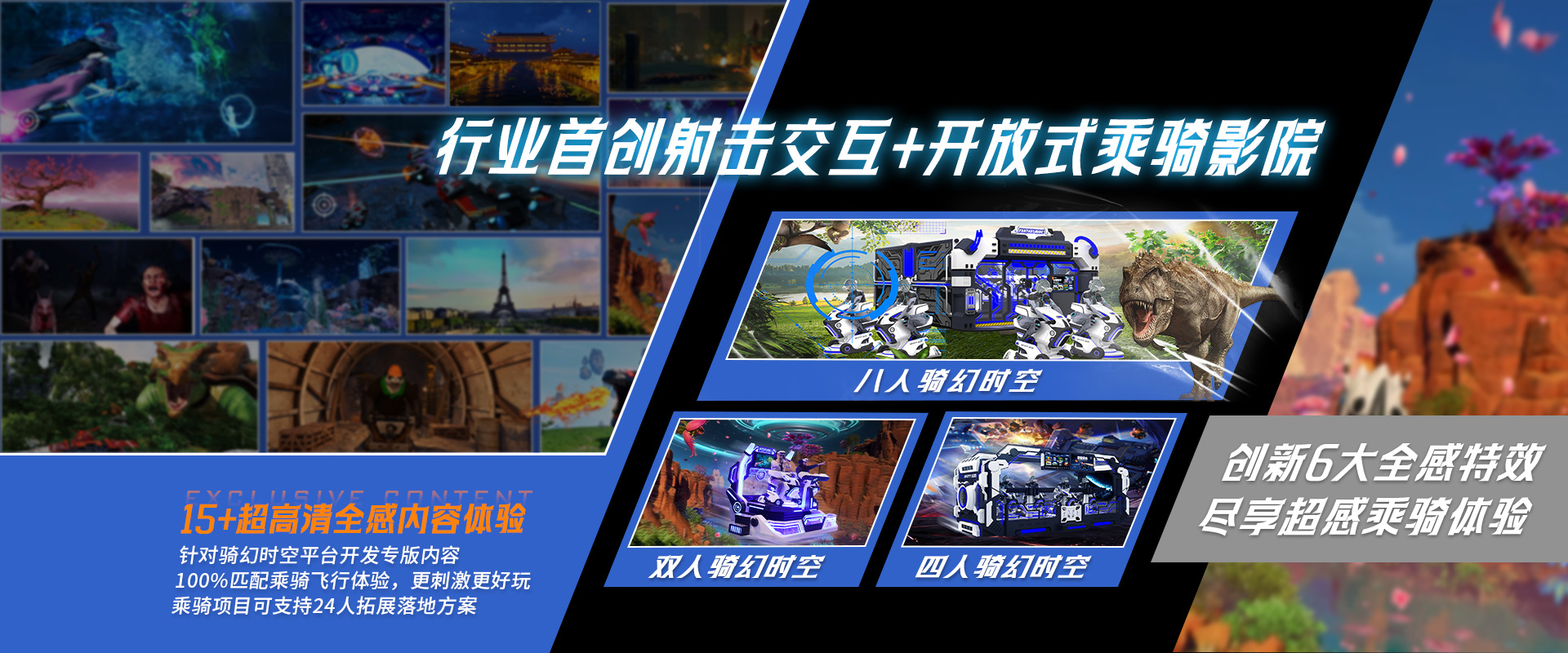 了解更多騎幻時空4人,是2024年全新推出的第二代VR乘騎設備,行業首次將輕量化特效升降模組,電動安全壓桿保護,射擊互動交互內容結合起來的乘騎體驗。豐富的全感特效加上公...